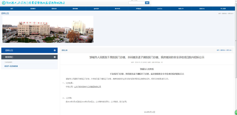 2019年5月15日,我公司成功中標“鄒城市人民醫院消防安全評估項目”。